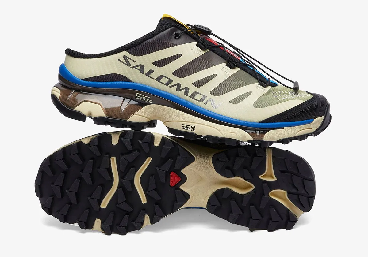 La silhouette emblématique de la XT-4 est ici transformée en version mule ouverte à l’arrière, offrant une lecture hybride entre fonctionnalité outdoor et expression fashion. La tige repose sur des matériaux techniques haute résistance à finition translucide, associés à des empiècements synthétiques structurés, conservant le maintien et la précision du modèle original. Le système de laçage Quicklace™ signature assure un ajustement rapide et sécurisé à l’avant du pied, tandis que la technologie Agile Chassis™ garantit stabilité, contrôle et réactivité, hérités de l’ADN trail performance de Salomon.