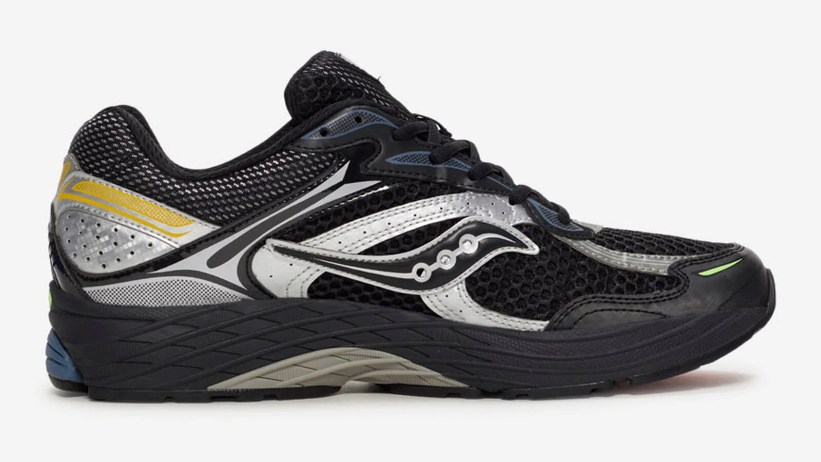 La Saucony ProGrid Omni 9 Black Silver Multi affirme une allure technique et contemporaine en mêlant sobriété, éclat métallique et nuances vibrantes. La tige combine un mesh noir profond à des superpositions Silver qui dessinent des lignes dynamiques, tandis que les touches Multi insufflent une énergie colorée subtilement répartie sur l’ensemble de la silhouette. Cette construction inspirée du running des années 2000 révèle un équilibre parfait entre légèreté, maintien et expression visuelle. Sous le pied, la technologie ProGrid déploie un amorti réactif et stabilisé, offrant une sensation de fluidité tout au long de la journée. Cette version incarne l’essence du style technorun moderne, fusionnant performance et esthétique futuriste avec une élégance instinctivement urbaine.