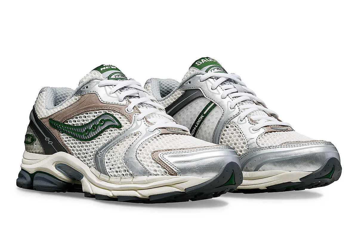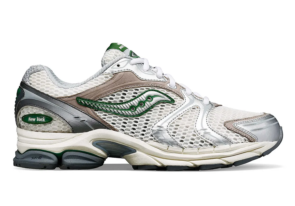 La Saucony ProGrid Triumph 4 Minted NY revisite l’ère running des années 2000 avec une esthétique rétro-tech sublimée par une palette fraîche et urbaine. La tige combine un mesh argenté respirant à des superpositions métalliques finement découpées, créant un jeu de textures dynamique qui célèbre l’identité performance de la Triumph 4. Les accents Minted Green, […]
