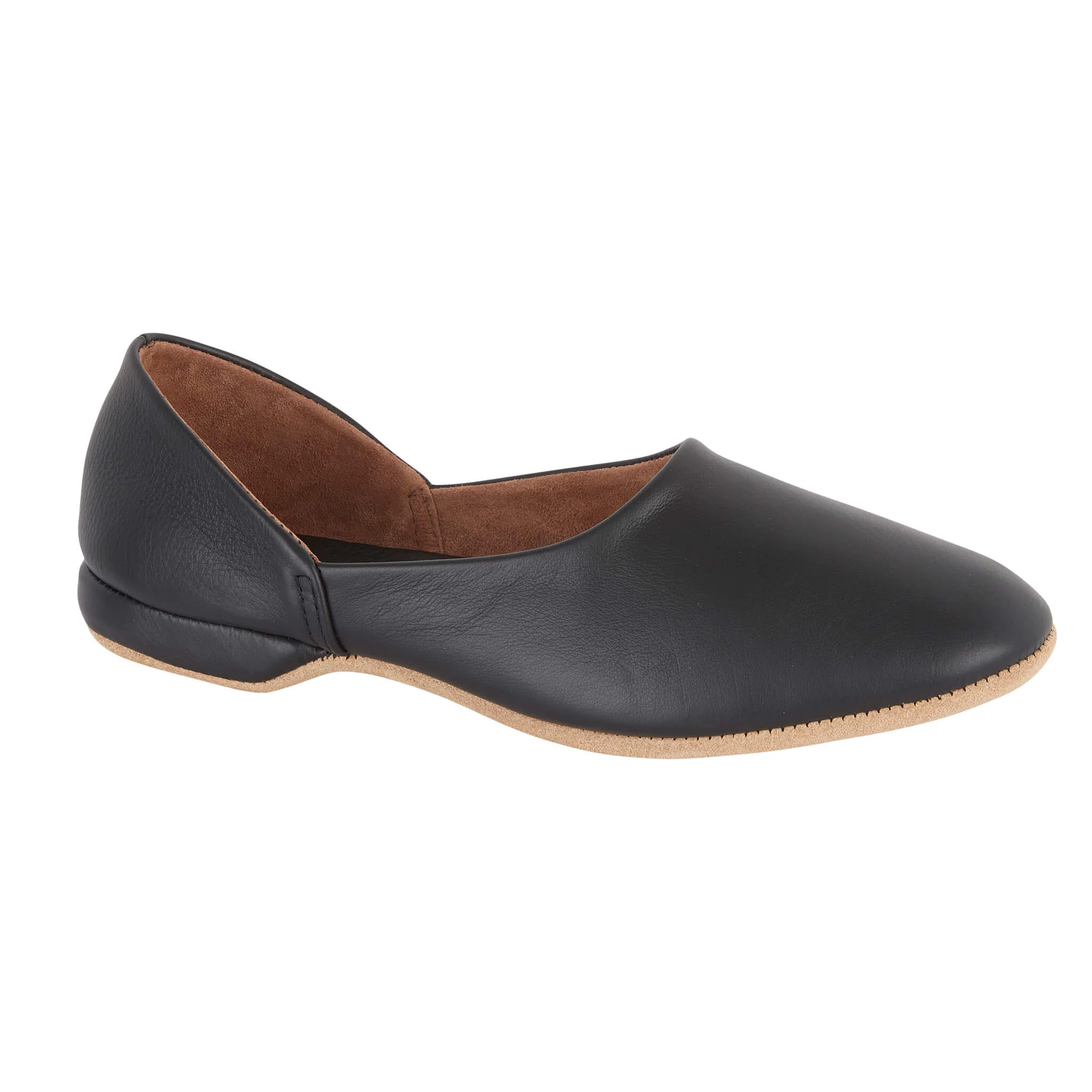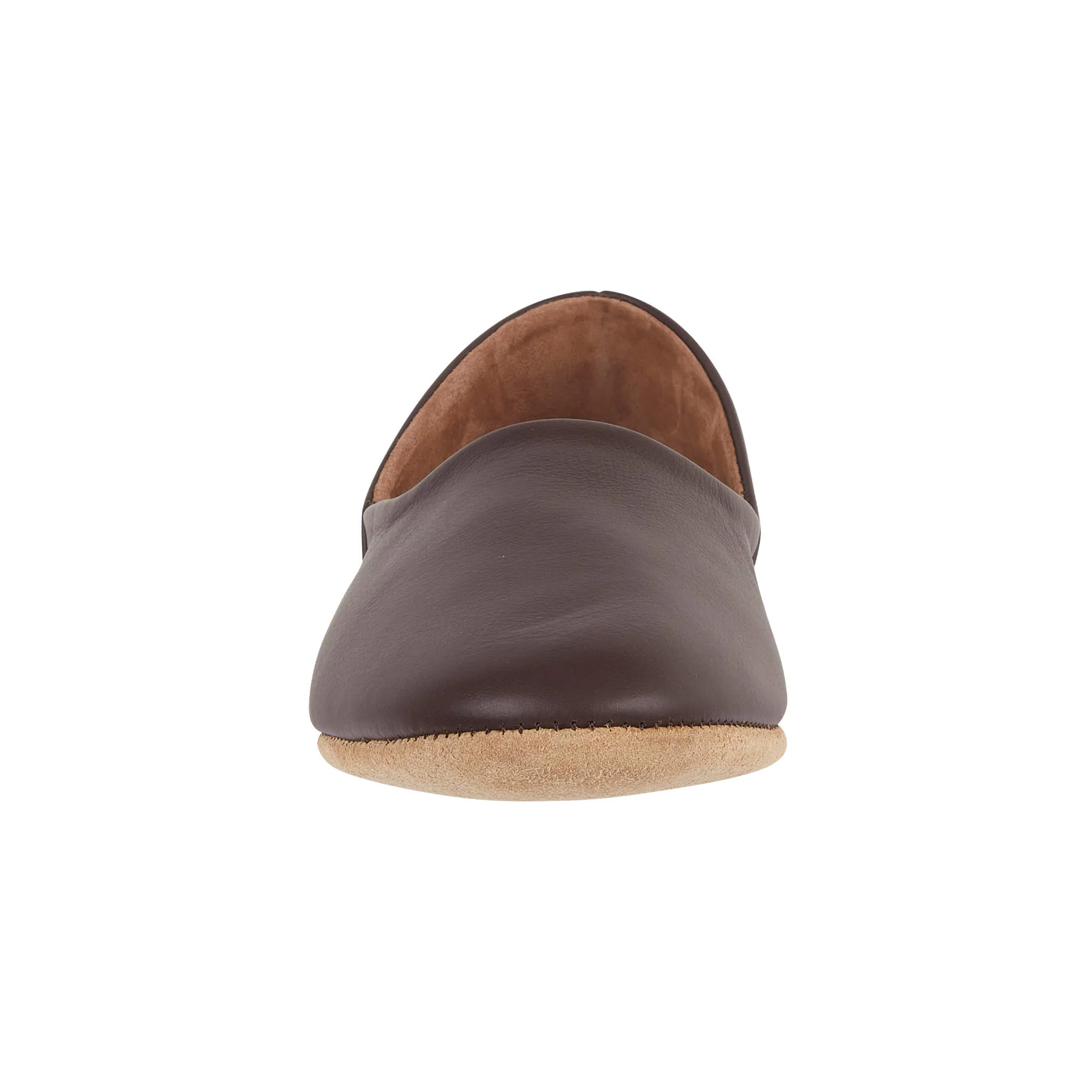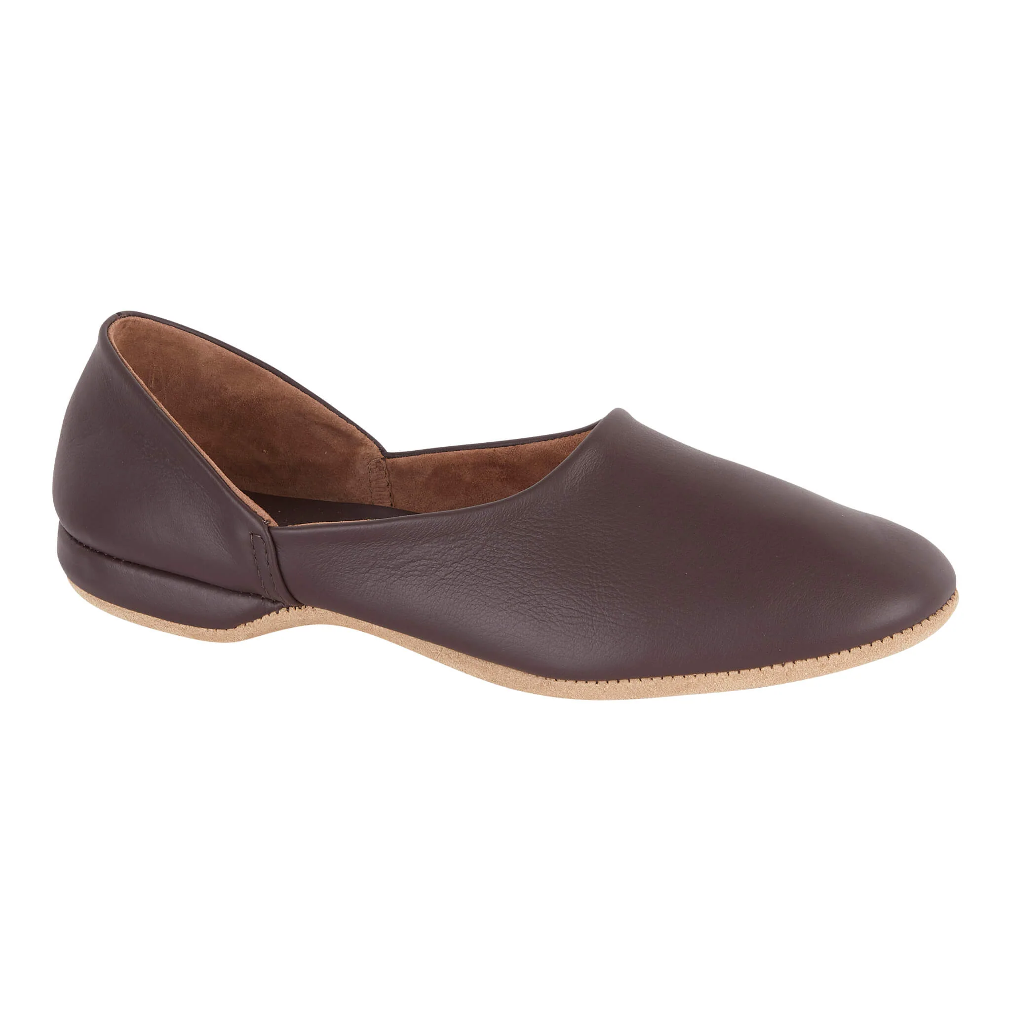 Flexible Suede Sole — Lightweight suede sole for flexible comfort and quiet indoor walking.