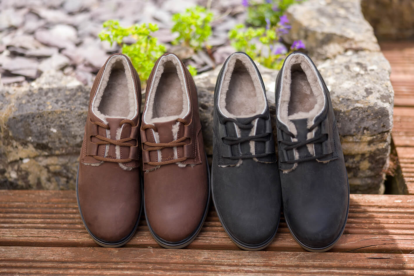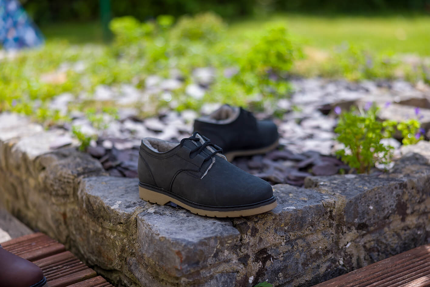 Our waxed leather sheepskin ghillie shoe for women. With our signature real sheepskin lining throughout, including the insole, and a hard wearing non slip sole, it has a waxed leather upper which is water resistant. 3/4 inch heel height.