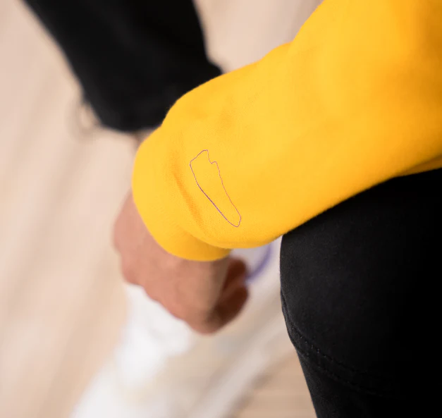 - Sur la manche gauche : notre sneakers « logo » très discret