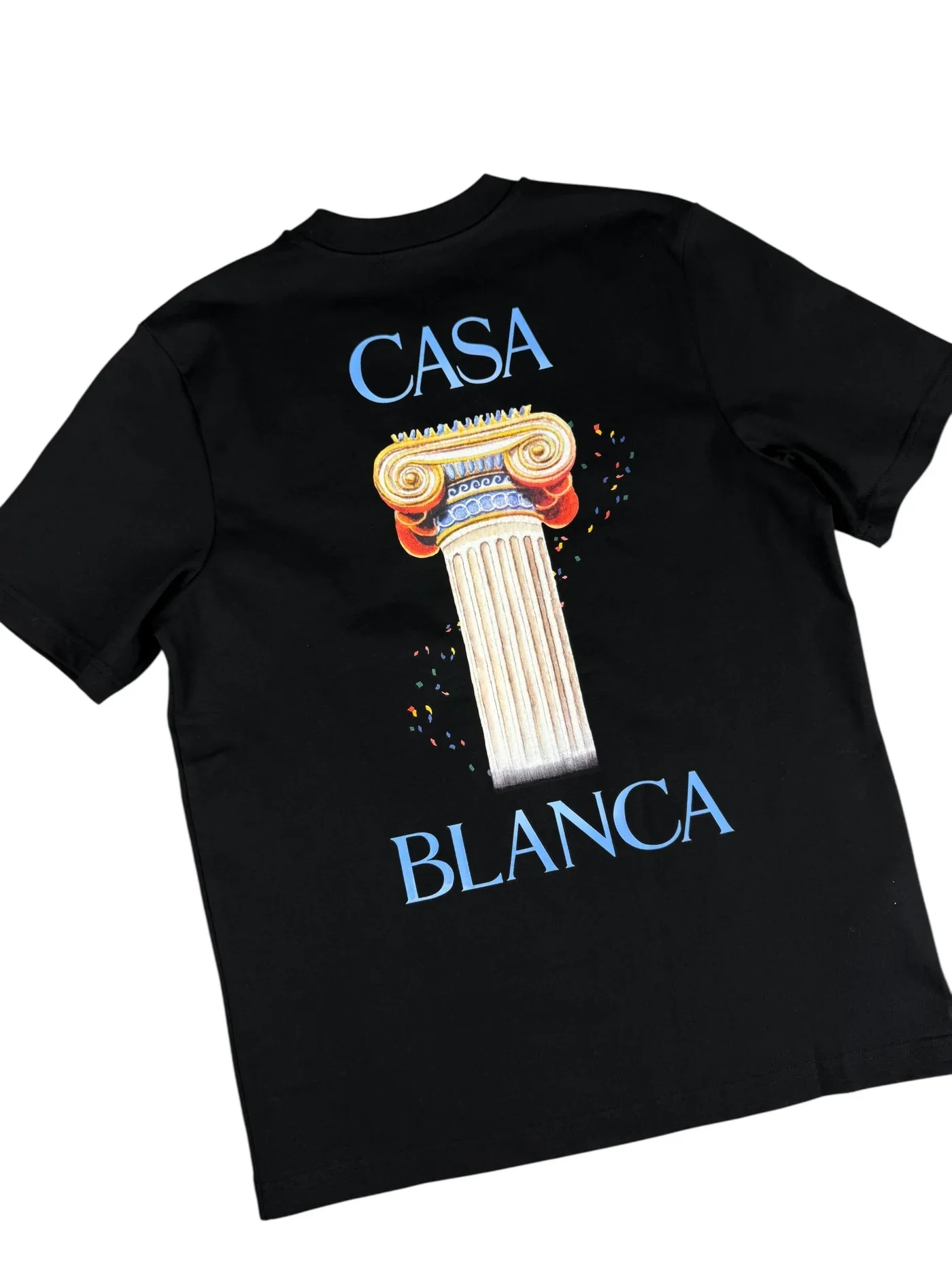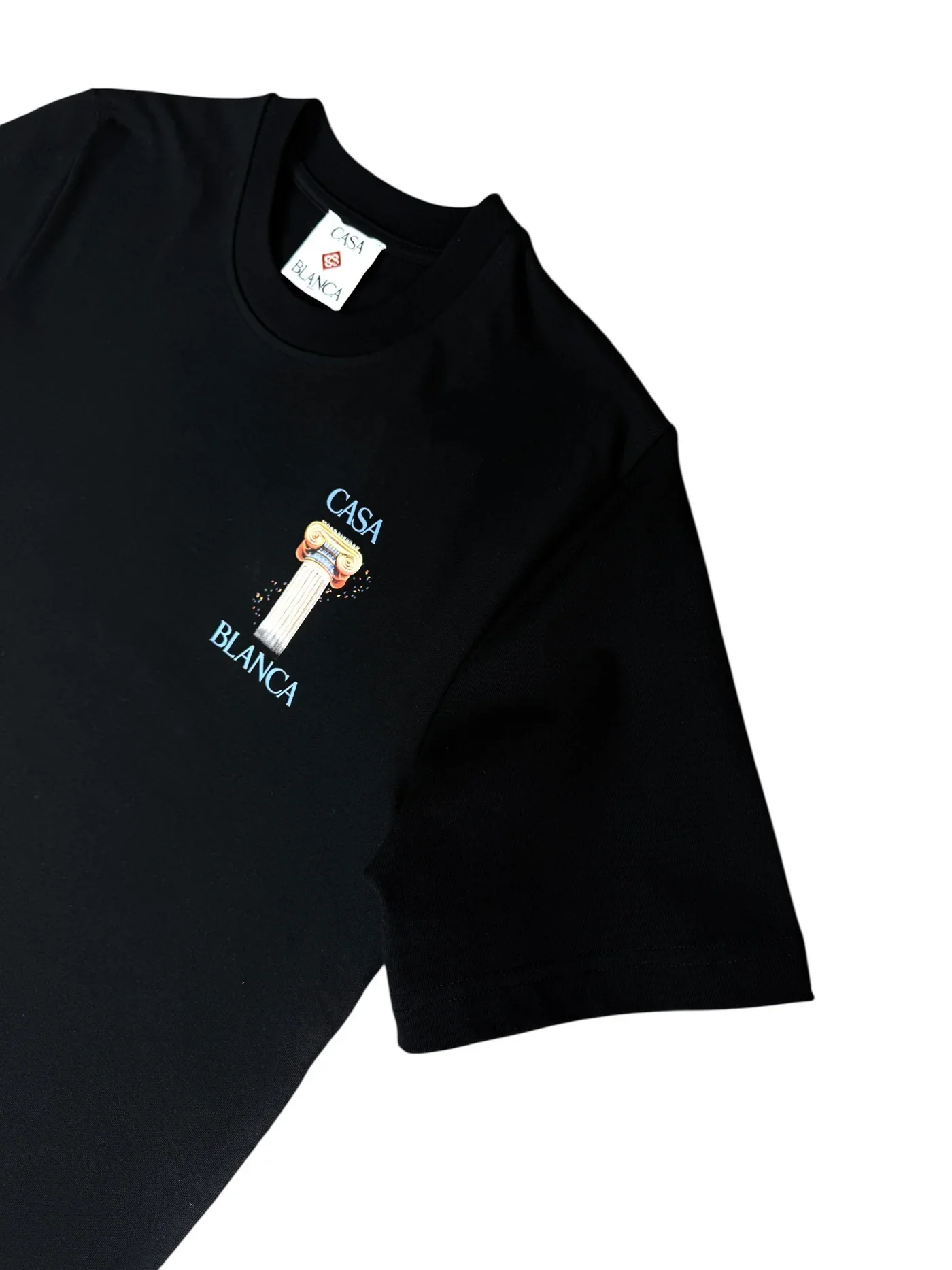 Le Tee-shirt Casablanca Black Colonne incarne l’élégance sportive et le raffinement graphique propres à la maison Casablanca, fondée par Charaf Tajer. Inspirée par l’art, l’architecture et l’esprit méditerranéen, cette pièce met en avant le design emblématique de la colonne — un motif signature de la marque — revisité sur une base noire minimaliste.