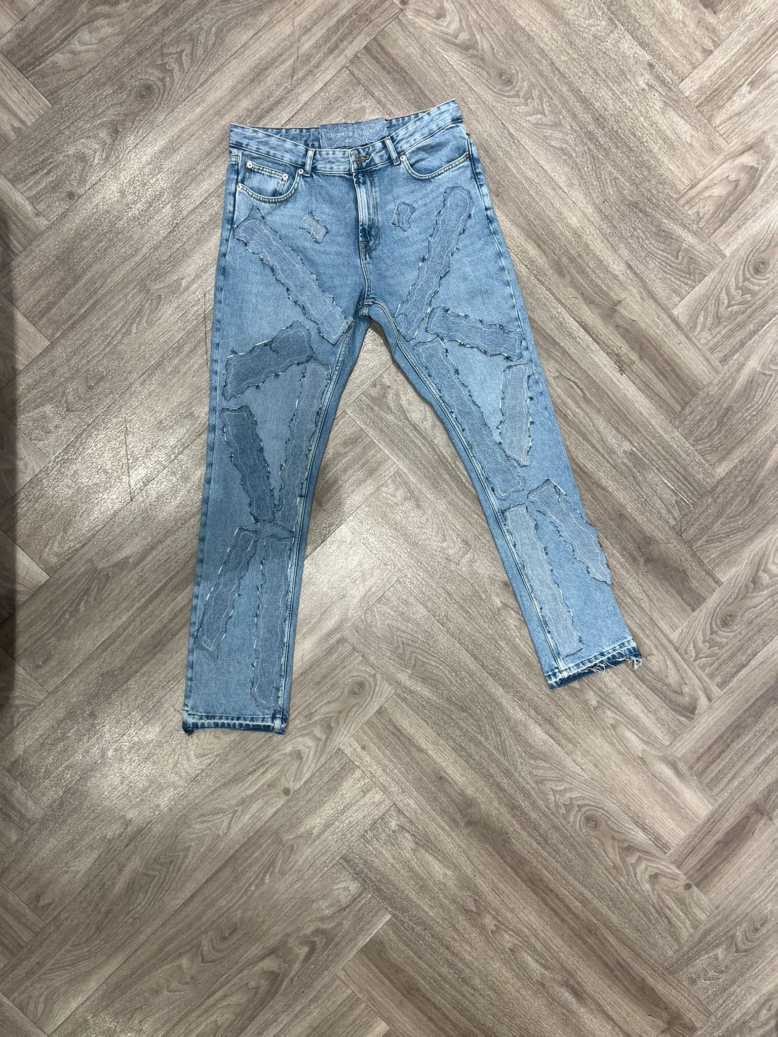 Le Denim Butterfly réinvente le jean classique avec un patchwork unique composé de pièces de denim soigneusement assemblées. Les coutures apparentes et les zones effilochées ajoutent une touche brute et moderne, parfaite pour un look streetwear audacieux. Avec sa coupe ajustée, ce jean souligne la silhouette tout en offrant un confort optimal. Idéal pour ceux qui souhaitent exprimer leur créativité et leur originalité à travers une pièce forte et iconique. Un choix incontournable pour un style urbain et tendance.