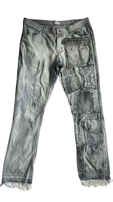 Le Denim One Leg Phantom est l’incarnation d’un style audacieux et urbain. Sa coupe déstructurée et ses patchs asymétriques en font une pièce iconique pour ceux qui osent se démarquer. Les déchirures et les détails bruts ajoutent une touche d’authenticité, créant un contraste entre le jean classique et un design avant-gardiste. Avec une jambe ornée de poches et de textures variées, ce denim capture l’essence d’une mode rebelle et contemporaine. Parfait pour un look streetwear qui allie style et attitude.