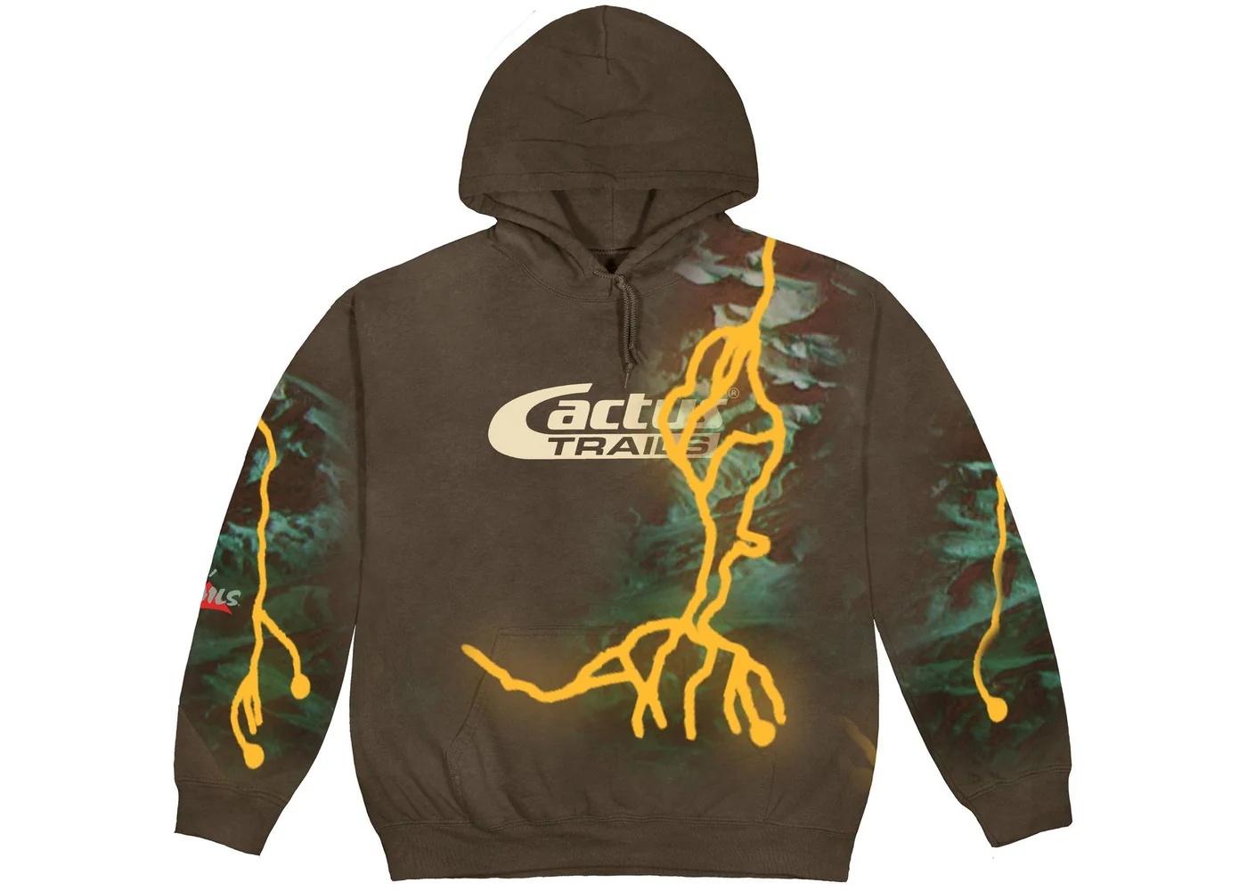 Le sweat à capuche Travis Scott Cactus Trails en marron fait partie de la collection Scott’s Cactus Trails, sortie le même jour que la collaboration de Scott en mai 2020 avec Nike. Ce sweat à capuche marron présente un logo Cactus Trails sur le devant ainsi que la marque Cactus Jack au dos et est recouvert d’un imprimé éclair. Le sweat à capuche Brown Cactus Trails de Travis Scott est sorti le 29 mai 2020