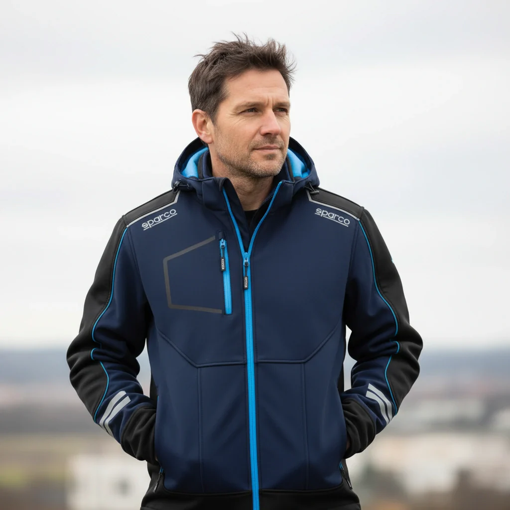 La veste softshell Sparco Tech York Marine/Bleu est parfaite pour les professionnels comme pour les amateurs de plein air, offrant une protection contre les éléments tout en assurant un style moderne et sportif.