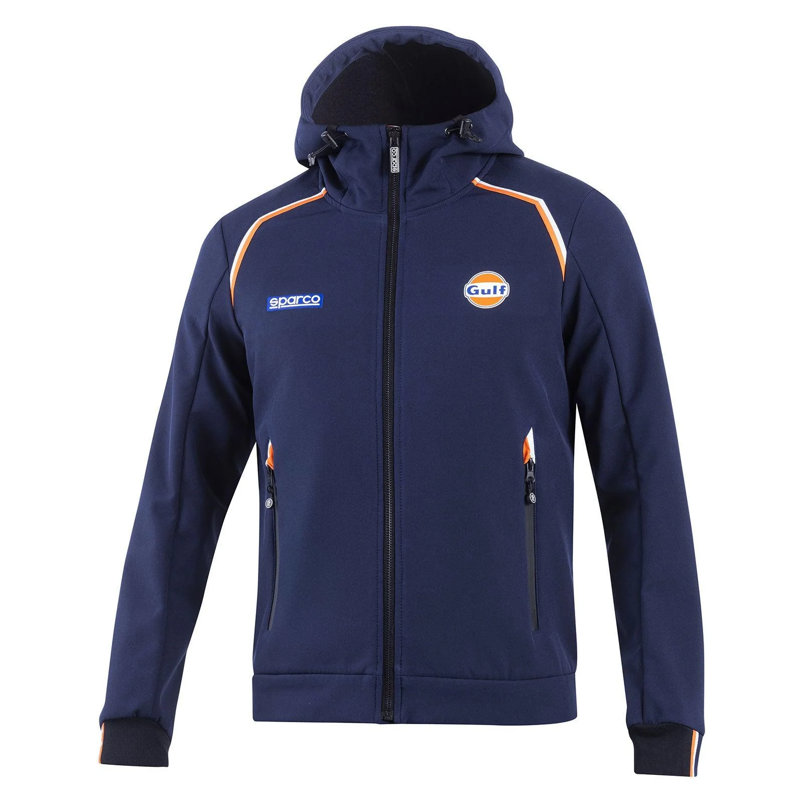- Style racing : Logos Gulf et Sparco brodés sur la poitrine, associés à des détails orange sur les épaules pour un look dynamique et authentique.